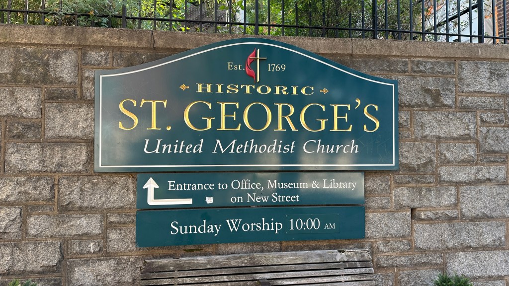 Saturday, September 13, 2025: We began the day at St. George’s UMC. Once again, Google Maps disappointed us by listing the museum as being open – that is not the case, it is only open to prearranged tours, not the general public. By this point in our journey, I’ve learned to not give up… so I rang the doorbell and was greeted by woman who thought we were there for Lay Minister training. After a short conversation, we were on the same page, and Pastor Bill Wilson walked into the room. Bill gave us a personal tour of the church, the renovations that are currently taking place (this is what temporarily closed the museum to the public), and shared many historical facts about St. George’s and Asbury. Bill is a retired elder on the New Jersey conference, who was asked to serve St. George’s in retirement. I give thanks for the hospitality afforded us by Pastor Bill, we will be worshipping at St. George’s Sunday morning.